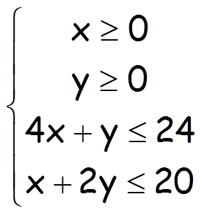 Un nutricionista informa a un individuo que, en cualquier tratamiento que se siga, no debe ingerir más de 240 mg de hierro ni más de 200 mg de vitamina B. Para ello, están disponibles píldoras de dos marcas, P y Q. Cada píldora de la marca P contiene 40 mg de hierro y 10 mg de vitamina B, y cuesta 6 céntimos de euro; cada píldora de la marca Q contiene 10 mg de hierro y 20 mg de vitamina B, y cuesta 8 céntimos de euro. Entre los distintos tratamientos, ¿cuál sería el de máximo coste diario? |