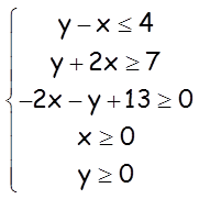 a) Represente el recinto y calcule sus vértices. b) Halle en qué puntos de ese recinto alcanza los valores máximo y mínimo la función F(x,y) = 4x + 2y -1 |