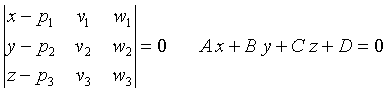 Si eliminamos l y m de las ecuaciones anteriores obtenemos la ecuación general, cartesiana o implícita. Que admite estas dos formas, según desarrollemos el determinante o no.